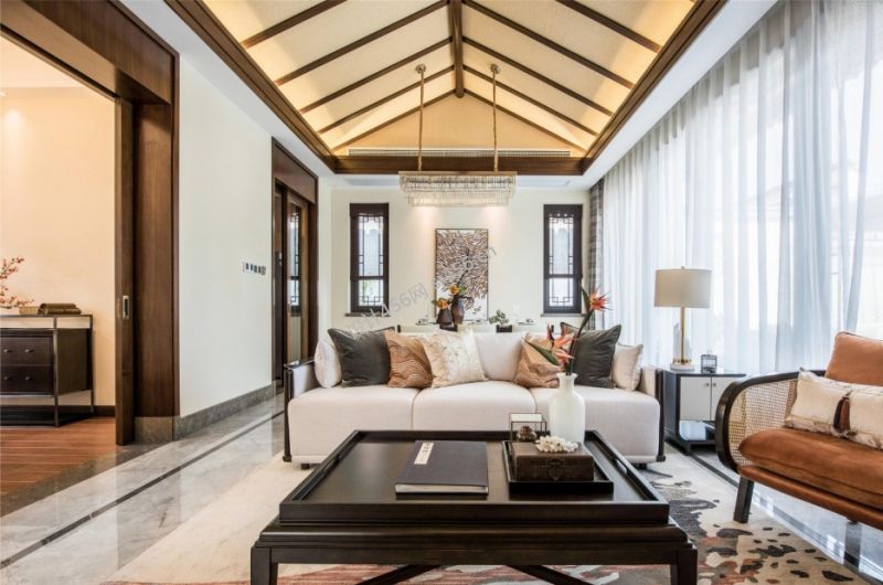 详情新中式风格122平米客厅装饰设计装修效果图片