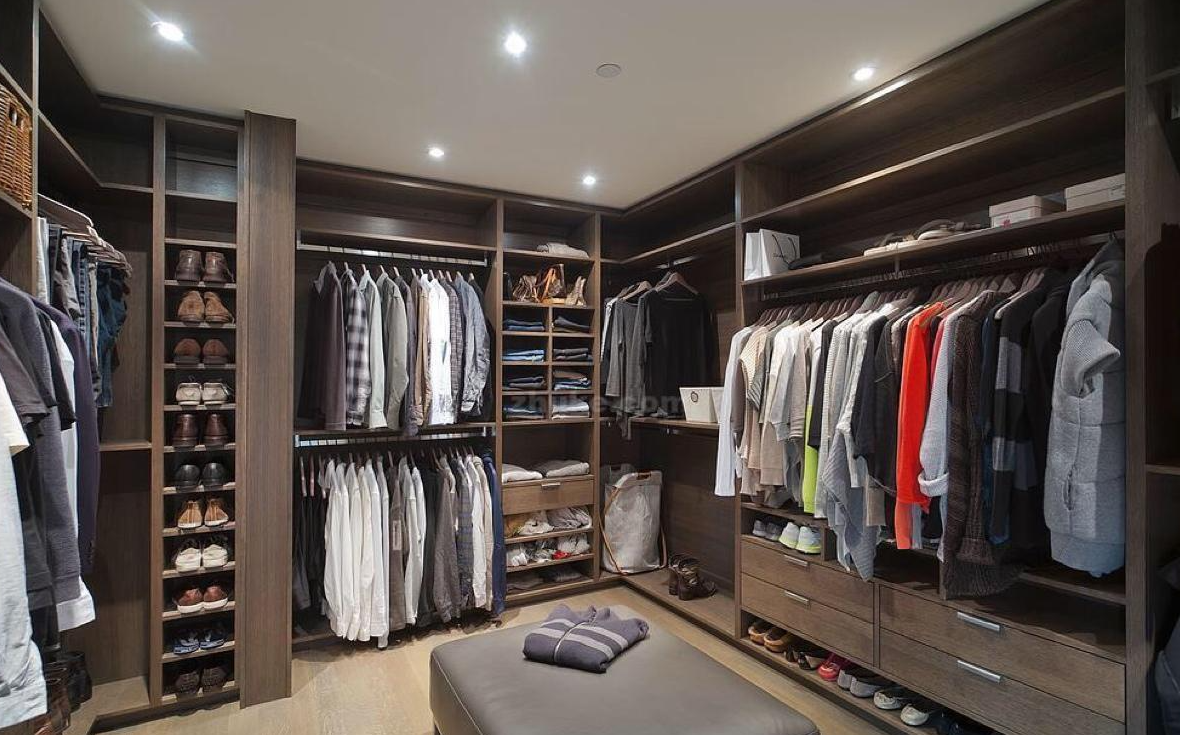 衣服的种类有很多种,对于收纳摆放也极为讲究。这里就需要用樘板合理的分割格局,把衣服、鞋包、帽子做一个规划。上衣放上面,裤子挂下面,包包摆放的空间不能拥挤,鞋子放底部。都需要很好的规整,避免格局杂乱。