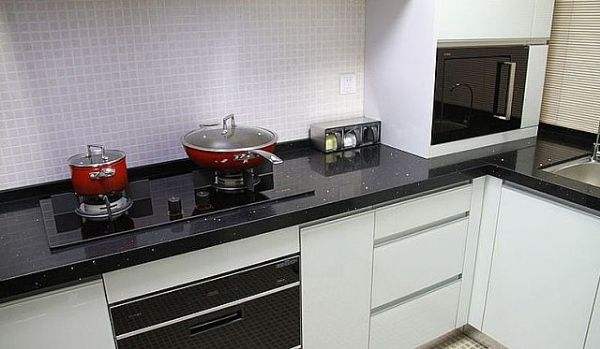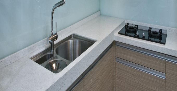 石英石橱柜台面具有耐酸、抗压、耐高温等性能,而且表面没有孔隙,一些油渍、水渍不易渗入进去,抗污力较强,但这种材质的价格较高。