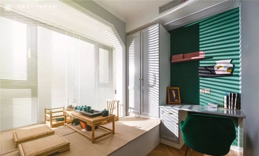 还有就是把新房的飘窗、阳台区域给改成了榻榻米,像是在家里打造一个集影音和工作一体的空间,就可以在其中布置一个榻榻米。