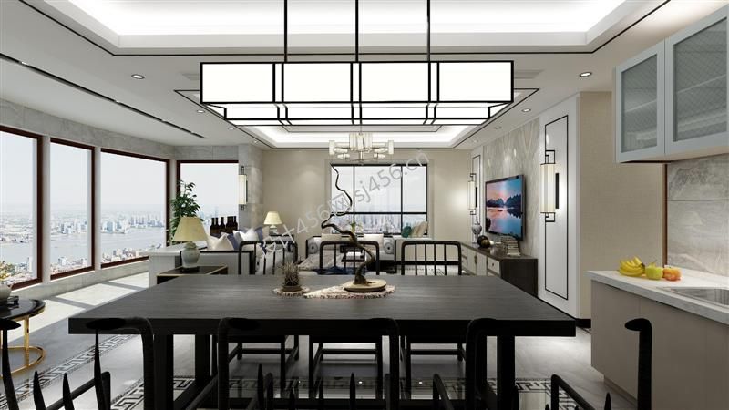 136平米新中式风格三居室餐厅吊顶装饰效果图