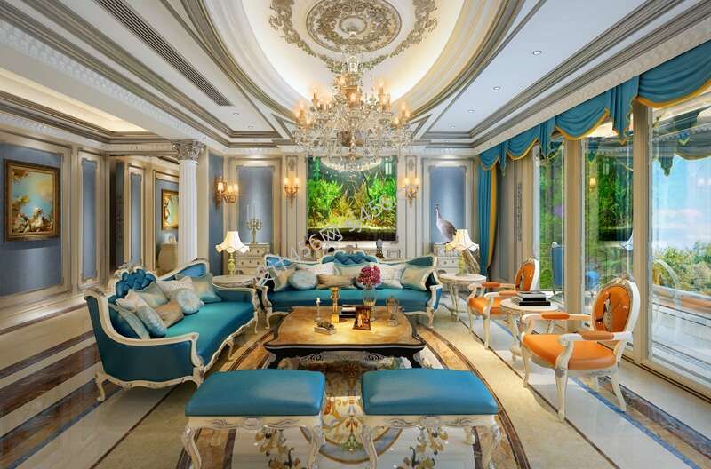 300㎡别墅法式风格客厅装修设计效果图