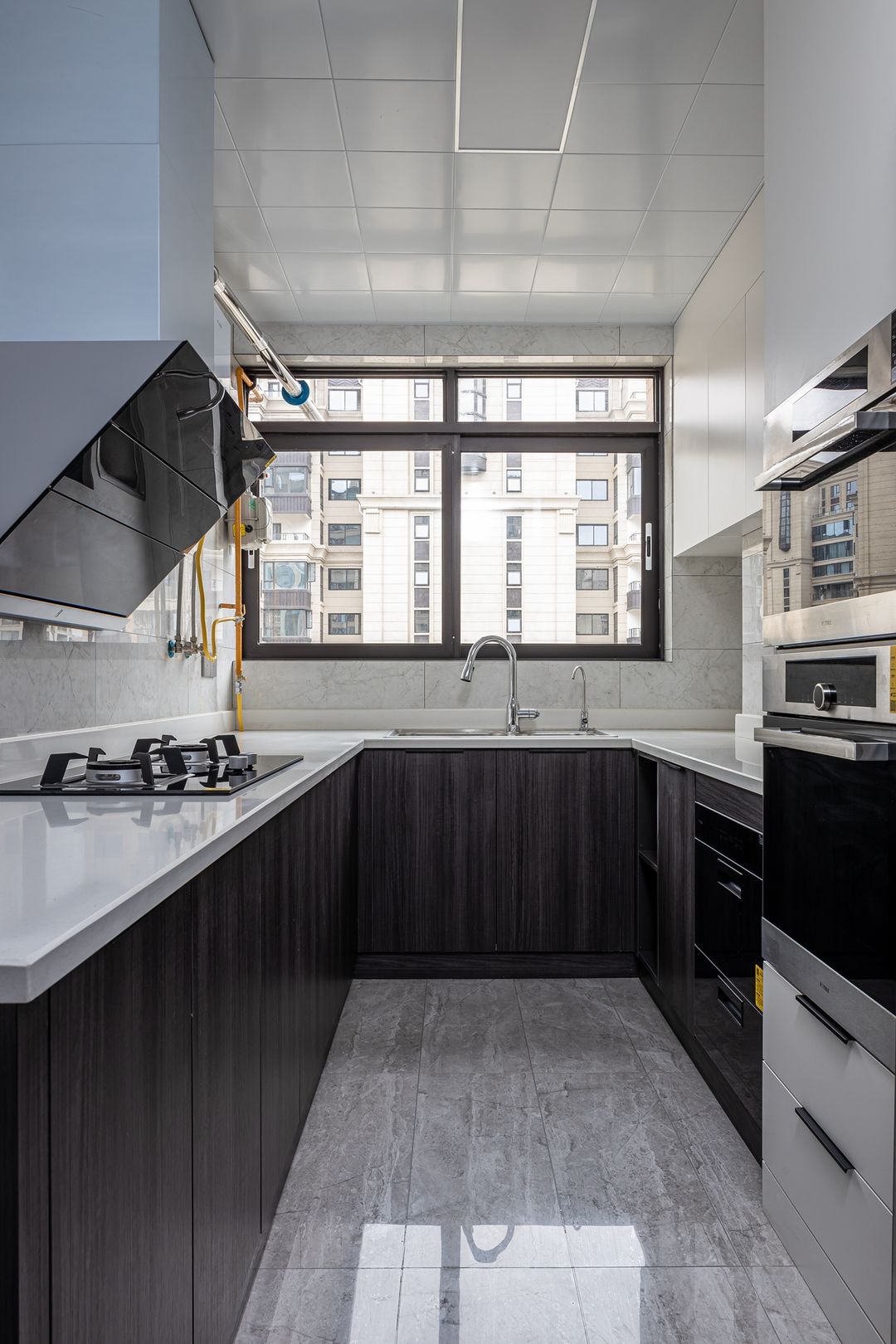 厨房原本空间比较小,后面将一个小阳台并入后,空间宽阔许多,U型格局,光线也很好,下厨会是一种享受。