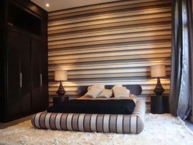 卧室墙壁常见的条纹元素大多呈现出水平条纹的形状。绘制水平条纹很容易,作为一个加号,使一个小房间看起来更大。
