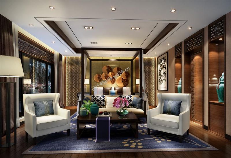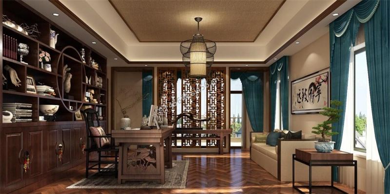 设计理念: 新中式风格融合了现代的简练与中式独有的韵味,文化气息在一桌一椅,一木一石之间得以体现。材质上糅合了石材与布艺以及木作,每个立面造型都独具慧心,石材的拉缝处理为整个空间增加了线条感,简洁时尚的吊顶与镂空雕花的组合堪称经典。色彩板块采用了使人耳目一新的湛蓝,与传统中式木作颜色碰撞,让人感觉焕然一新。摒弃了中式风格中旧家具的坚硬,给居住空间带来了极大的舒适感,将舒适与美感结合,创造出独一无二的大宅设计。 新中式风格融合了现代的简练与中式独有的韵味,文化气息在一桌一椅,一木一石之间得以体现。材质上糅合了石材与布艺以及木作,每个立面造型都独具慧心,石材的拉缝处理为整个空间增加了线条感,简洁时尚的吊顶与镂空雕花的组合堪称经典。色彩板块采用了使人耳目一新的湛蓝,与传统中式木作颜色碰撞,让人感觉焕然一新。摒弃了中式风格中旧家具的坚硬,给居住空间带来了极大的舒适感,将舒适与美感结合,创造出独一无二的大宅设计。