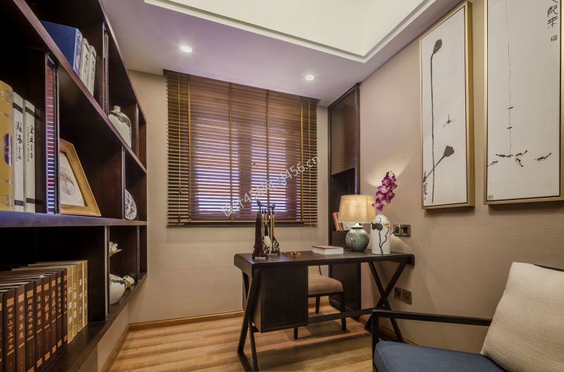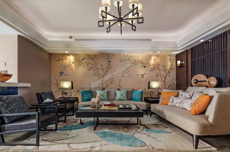 详情194平方米新中式风格四居室客厅背景墙装修案例