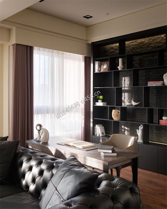 112平米三居室简约风格客厅书房装修设计案例