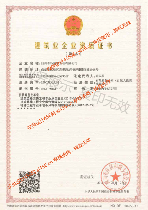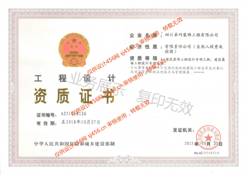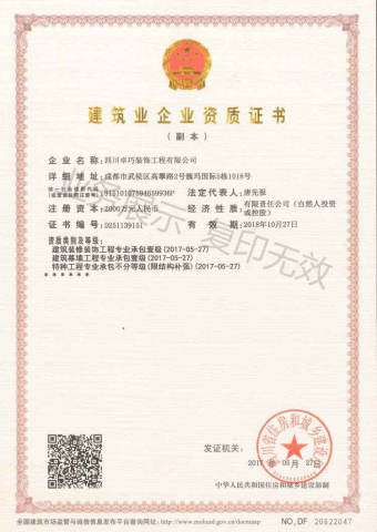 四川卓巧装饰工程有限公司前身为成都云森建筑装饰工程有限公司,于2000年正式成立,历经数年稳健发展,至2012年因公司发展规划需要,以该团队组建成四川卓巧装饰工程有限公司,并通过国家工商局审批成立。四川卓巧装饰工程有限公司作为我省装饰行业知名企业,自成立以来坚持高起点,高品质的方针,秉承“以人为本、诚信务实”的经营理念,积极把握市场脉搏,以“团结、敬业、自律、创新”的企业精神,铸就良好的企业品牌形象。 公司专业从事各类酒店、宾馆、店面、办公空间、售楼部、商用空间、厂房、茶楼、大型娱乐会所等公装工程及部分高端家装工程的设计与施工,成品住宅装饰装修、商品房公共区域装饰装修、建筑幕墙设计与施工、特种工程加固及施工。公司拥有经验丰富的设计精英团队和专业的现场管理人员及全套专业的施工队伍。在设计上,我们追求新颖独特而又美观实用的设计理念;在施工上,我们奉行“精密管理、精湛施工、精细服务”的质量方针,对每一个工程的各个施工环节严格把关,为高品质的工程质量提供了根本保证;在经营管理上,分工明确,责任到人,不放过任何一个细枝末叶,不断追求完美。 四川卓巧装饰工程有限公司注册资金2000万,公司现拥有建设部颁发的建筑装饰设计乙级;建筑装饰装修施工壹级;建筑幕墙设计乙级;建筑幕墙施工壹级资质;特种工程专业承包(结构补强);钢结构三级资质。公司名称和LOGO已通过国家商标总局商标注册,同时也是成都市建筑装饰协会会员单位,先后获得“成都市装饰行业协会会员单位”,“重合同守信用企业”,“重质量.讲规则.守诚信.质量信誉同盟企业”等殊荣。 “卓越品质,巧创价值!”我们相信“一分耕耘,一分收获”,期待着与各界精英携手共进,共创未来!