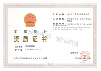 | 装修服务 | 公司专业从事各类酒店、宾馆、店面、办公空间、售楼部、商用空间、厂房、茶楼、大型娱乐会所等公装工程及部分高端家装工程的设计与施工,成品住宅装饰装修、商品房公共区域装饰装修、建筑幕墙设计与施工、特种工程加固及施工。 |