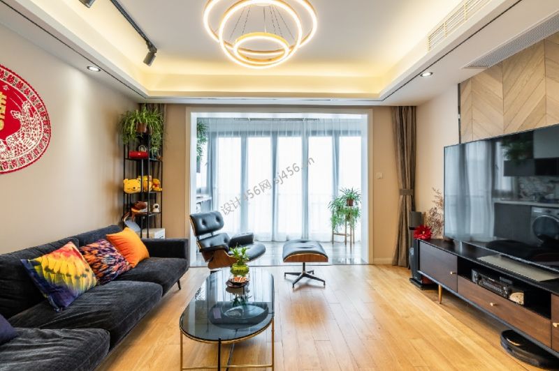 130平三居室现代简约风格客厅装修效果图
