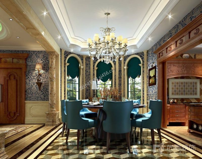 新古典风格别墅餐厅吊灯装修效果图