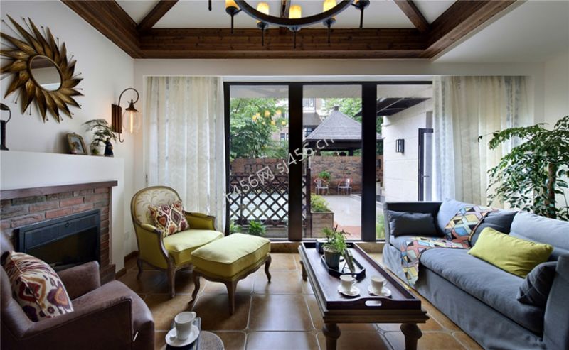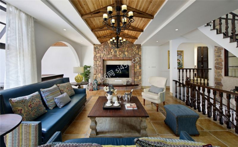 悦水蓝山美式风格300平米别墅客厅装修效果图