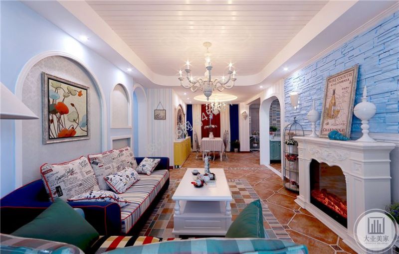 详情复地雍湖湾地中海风格200平米客厅装修效果图