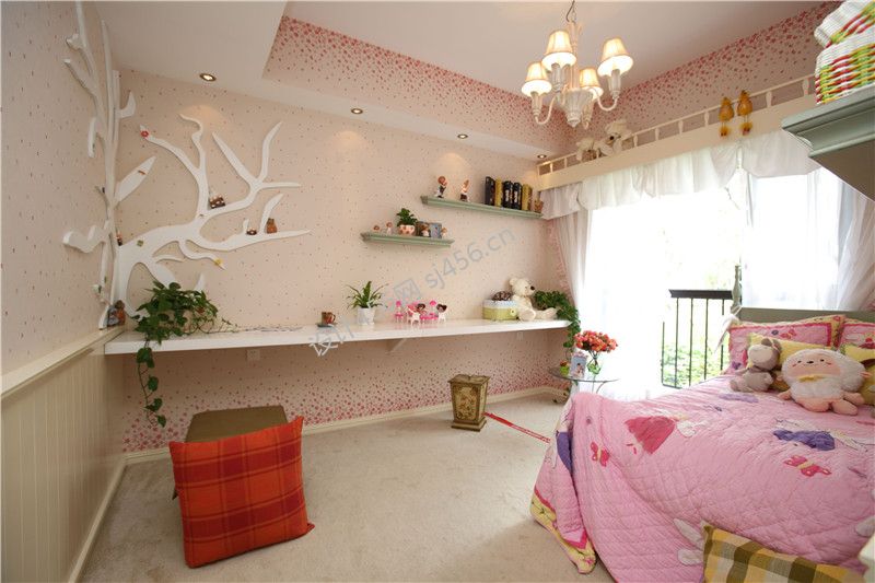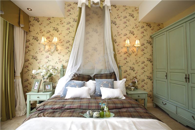 90平米二居温馨田园风格卧室墙纸装饰效果图