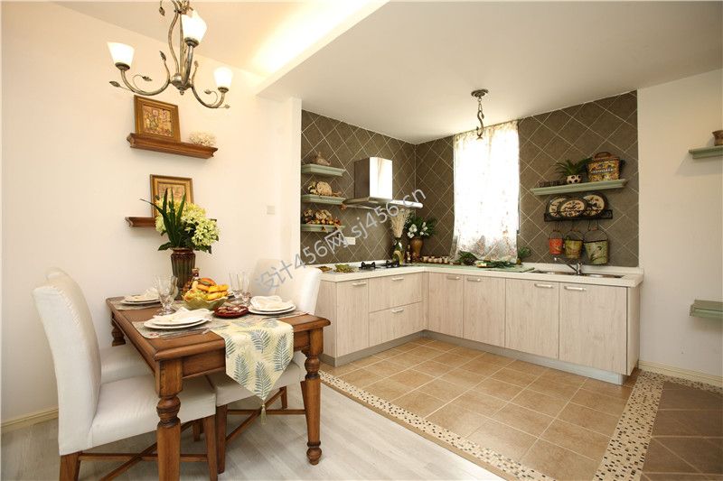 90平米二居温馨田园风格餐厅厨房装修实景图
