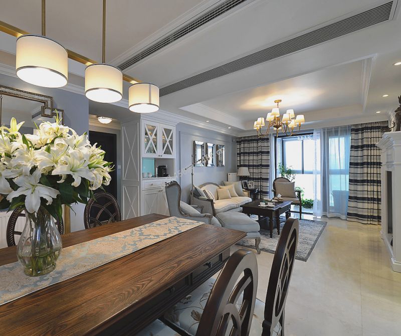 2020现代美式风格三居室餐厅长方形餐桌布置图片