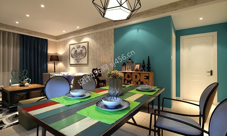 华润金悦湾225平四居混搭风格餐厅餐桌色彩搭配效果图