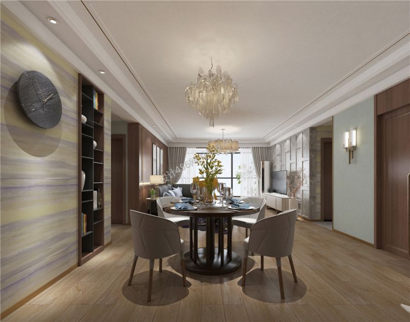 时代欣城三居100平现代简约风格餐厅背景墙酒柜设计图