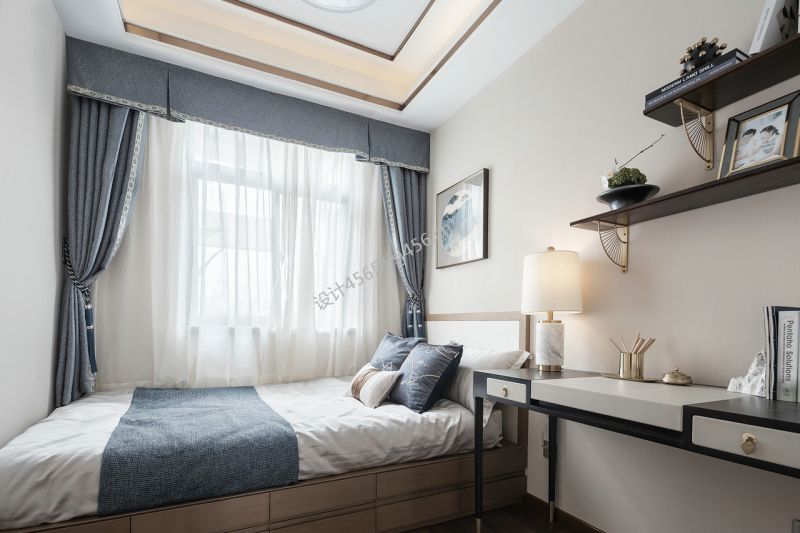设计理念: 本案例主色调汲取了江南水乡高级烟灰蓝,在空间中铺陈出别有风致的现代中式美学,处处透露着对东方清雅生活意境的美好追求.整个空间中,没有任何显著的东方符号堆砌,言有尽,意无声,却自始至终浸透着东方特有的禅思静谧 素雅的米灰色平静而柔和,温暖的琥珀色、深邃的烟灰蓝与木色搭配相得益彰,坐榻端正清秀,山水峻秀,云之缥缈 隐约的水墨背景与两侧的金属屏风,构成虚与实,疏与密的哲学均衡美,茶几大理石的纹路自然演绎了一幅自然山水之美,赋予空间绵绵不尽的诗意想象 本案例主色调汲取了江南水乡高级烟灰蓝,在空间中铺陈出别有风致的现代中式美学,处处透露着对东方清雅生活意境的美好追求.整个空间中,没有任何显著的东方符号堆砌,言有尽,意无声,却自始至终浸透着东方特有的禅思静谧 素雅的米灰色平静而柔和,温暖的琥珀色、深邃的烟灰蓝与木色搭配相得益彰,坐榻端正清秀,山水峻秀,云之缥缈 隐约的水墨背景与两侧的金属屏风,构成虚与实,疏与密的哲学均衡美,茶几大理石的纹路自然演绎了一幅自然山水之美,赋予空间绵绵不尽的诗意想象