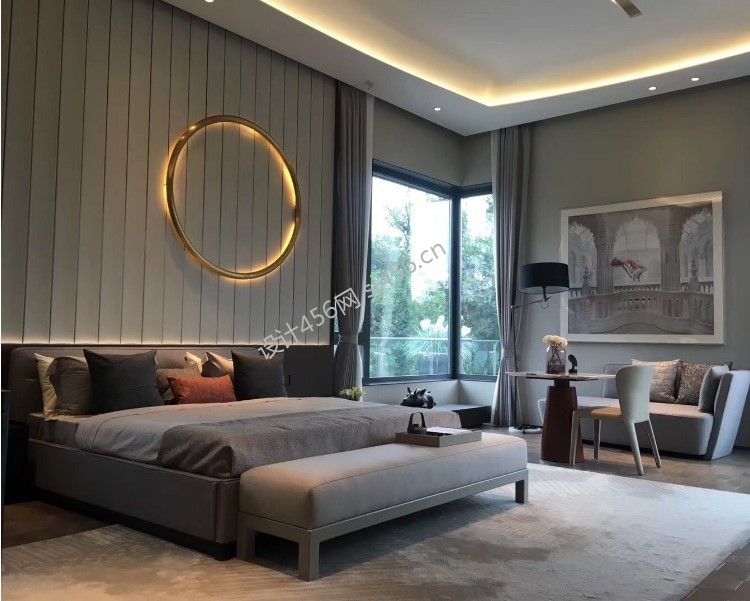 轻奢风格149平四居室卧室床尾凳装修设计图