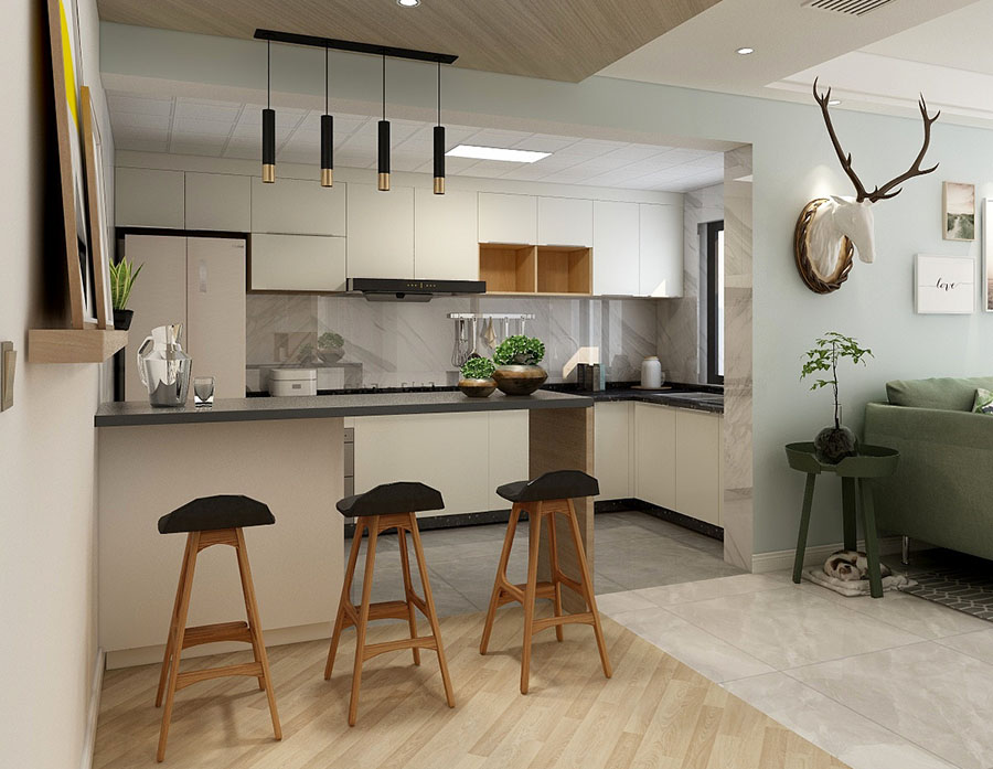 冰箱旁设计一个小吧台设计,更符合年轻人的需求,温馨又浪漫。