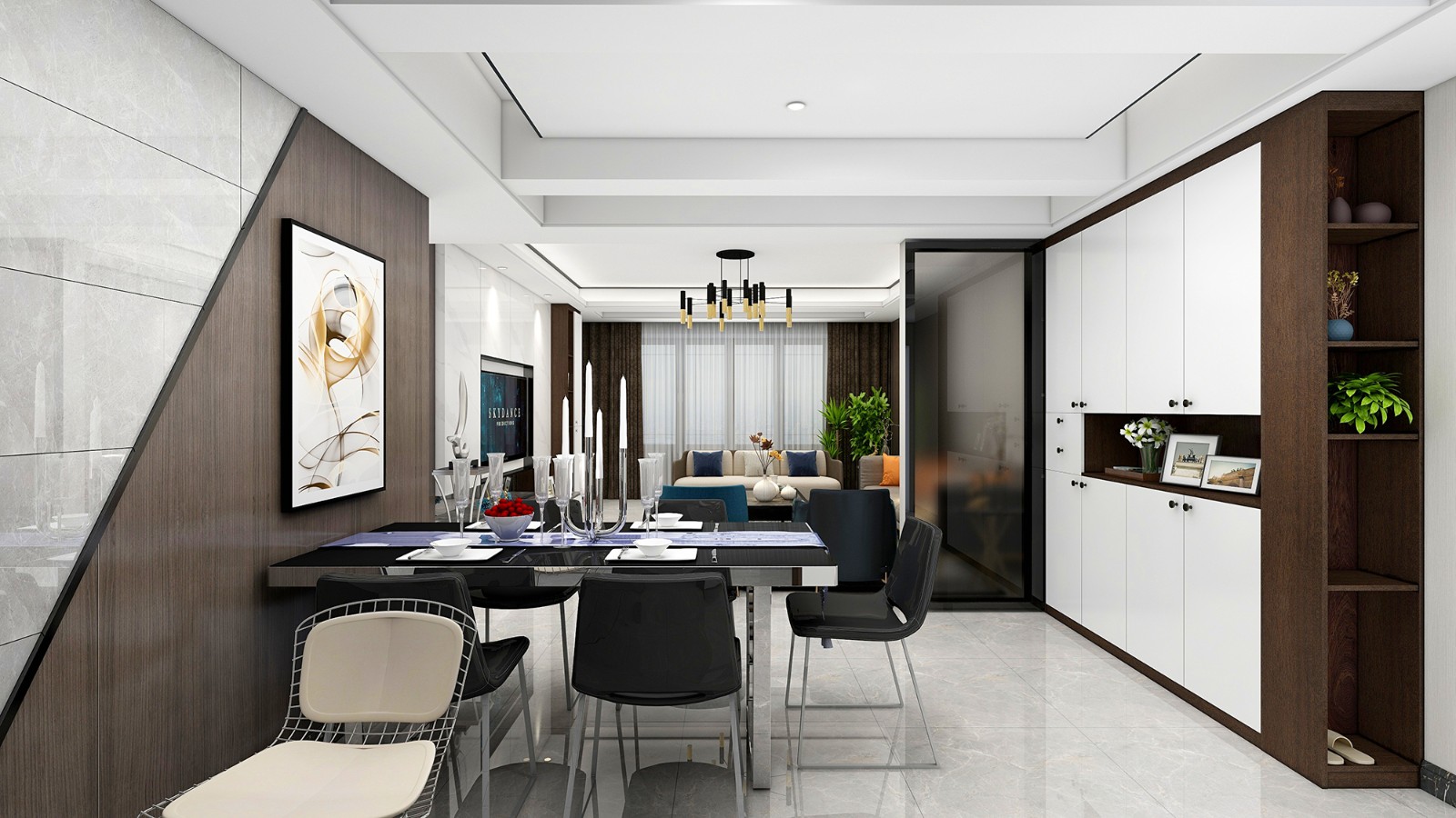 客餐厅用半透明的玻璃进行隔断,隐隐约约的感觉,增加两个空间的神秘感。