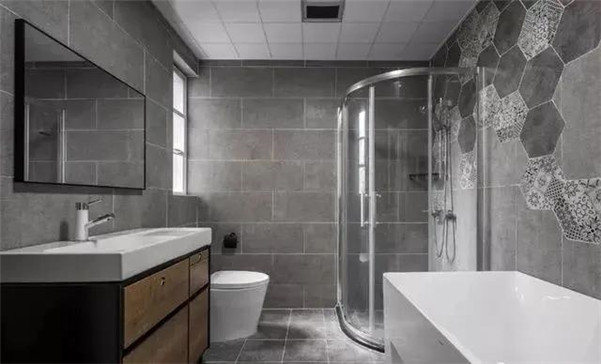 灰色似乎是简约风里永恒的主题,在卫生间里贴灰色的墙砖,自然是非常符合年轻人的审美观。不过需要注意的是:卫生间采光差的,不建议用灰色墙砖,显得昏暗。
