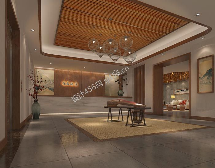 中式风格4000平米酒店接待大厅装修效果图