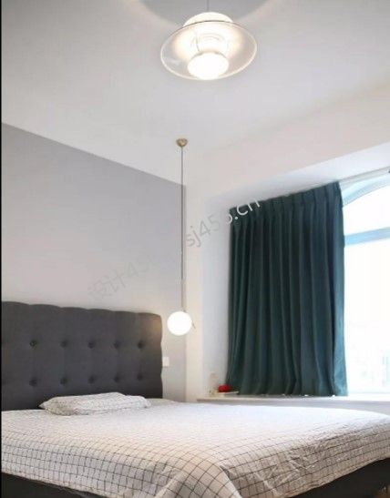 90平米三居室现代简约卧室飘窗窗帘装修图片