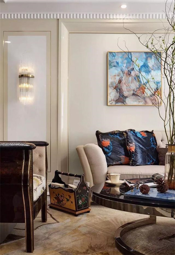 在极简顶面装饰一些花纹线条,结合墙面壁纸、挂画及亮色带来强烈的视觉冲击,不仅有着非凡的艺术表现力,还能营造出华丽典雅的感觉,美得让人眼前一亮。