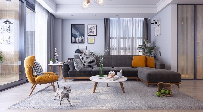 设计理念: 简单纯粹的现代北欧风格,一直深得年轻人喜爱。本案以白色和灰色为主色调,利用现代灯具和吊顶造型来减少白色的顶面的单调感,再利用方格墙砖和装饰画等软装饰品来中和灰色墙面的单调感,通过色彩的巧妙搭配来提升居室的质感,将一些现代个性的元素融入到柔美的北欧风格中,呈现干净明朗、清新舒适的空间。这让居室不仅有很好的美观性,使用起来也很实用,让家的每一寸空间都有舒适的感受。 深灰色的沙发,亚麻材质透气性、舒适度都非常可靠,价格也适中,是年轻人装饰家居环境的一个不错选择!搭配几何状的薄款地毯,圆茶几,加上橙黄色坐凳,明亮简约又时尚。 原木色橱柜,为居室增加一份自然亲切感,营造惬意放松的居住环境。 整个装修,无论是空间的线条、地面墙面的装饰,还是家具的选择,它都讲究简洁、流畅、有质感。空间线条是直而流畅的,家具是简洁而实用的,居室空间是宽敞通透的,有较为充足的采光,给我们一种明朗敞亮的感觉。 简单纯粹的现代北欧风格,一直深得年轻人喜爱。本案以白色和灰色为主色调,利用现代灯具和吊顶造型来减少白色的顶面的单调感,再利用方格墙砖和装饰画等软装饰品来中和灰色墙面的单调感,通过色彩的巧妙搭配来提升居室的质感,将一些现代个性的元素融入到柔美的北欧风格中,呈现干净明朗、清新舒适的空间。这让居室不仅有很好的美观性,使用起来也很实用,让家的每一寸空间都有舒适的感受。 深灰色的沙发,亚麻材质透气性、舒适度都非常可靠,价格也适中,是年轻人装饰家居环境的一个不错选择!搭配几何状的薄款地毯,圆茶几,加上橙黄色坐凳,明亮简约又时尚。 原木色橱柜,为居室增加一份自然亲切感,营造惬意放松的居住环境。 整个装修,无论是空间的线条、地面墙面的装饰,还是家具的选择,它都讲究简洁、流畅、有质感。空间线条是直而流畅的,家具是简洁而实用的,居室空间是宽敞通透的,有较为充足的采光,给我们一种明朗敞亮的感觉。