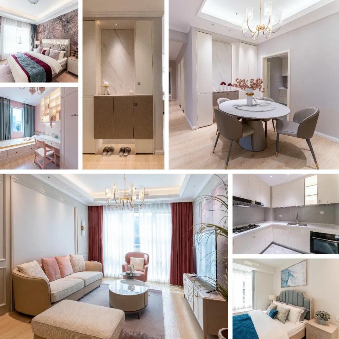 这套使用粉色点缀的咖啡色主题美居是一个三室一厅的房子。整个房子利用了高挑设计和轻盈的家具,线条柔和,瞬间展现出轻奢的风格。与胜男一样,这个房子也有着浪漫优雅的特质。