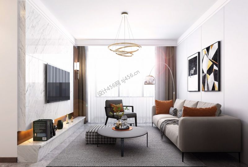 三居107平现代简约风格客厅装修图