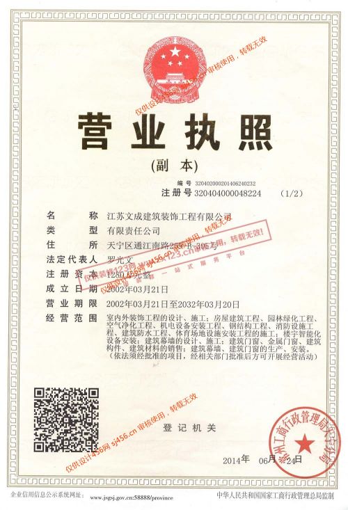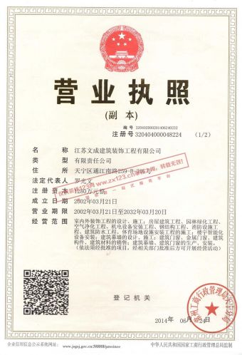 江苏文成建筑装饰工程有限公司是一家专业的装设公司,承接办公楼、商场、宾馆、别墅、住宅等室内装饰。公司现拥有国家2级装饰施工资质,并在2003年被认定为中国质量万里行信誉跟踪单位,2007年获常州市首届家庭装修施工大奖赛金奖,2008年、2009年获多项住宅装修金奖、银奖、优质奖, 2009年公司获得优秀住宅装饰企业的荣誉称号,公司法人也于同年获得优秀企业经理的荣誉称号。公司拥有多名高层管理人员、高级设计师与工程师及技师等。 长期以来公司本着完整的工程质量保证体系以及完善的售后服务,以敏锐的市场观察力以及精湛的技术和过硬的工程质量为客户营造“物超所值、舒雅温馨”的生活和工作空间。公司集“咨询、预决算、施工、材料采购加工及全功能配套的综合企业服务”为一体,以人才、设计、技术、质量的优势,通过不懈努力与追求,形成了文成装饰精辟思维、独特设计的理念,并与高起点、高标准、高要求的经营格局,倾心为客户服务。得到了广大客户的好评。公司以“低价、优质”为原则,对所有装修工程实行透明报价,并对装饰材料实行绿色环保验收工作,让客户称心、放心、省心。 欢迎您前来咨询,我们免费量房设计。并以最低廉的价格为您打造最具文化内涵的时尚家居。