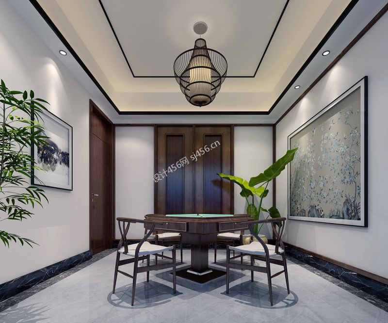 新中式别墅机麻摆放装修效果图片
