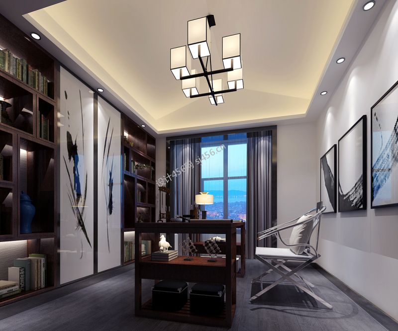新中式书房装修效果图 装饰画装修效果图片