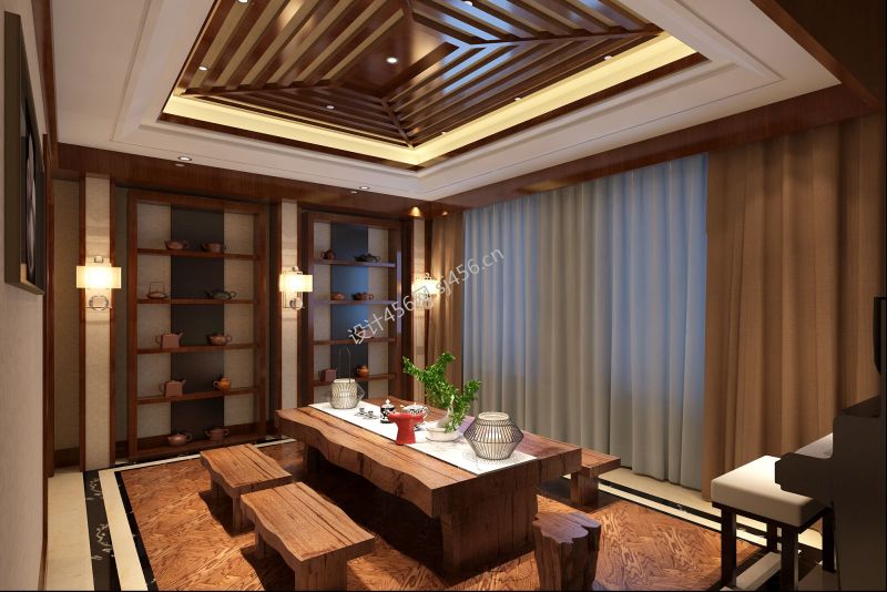 新中式别墅茶室装修效果图大全