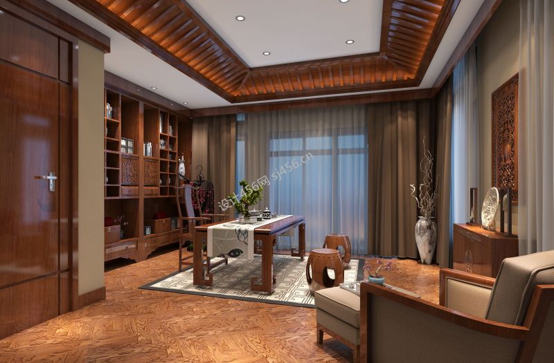 新中式别墅书房装修图片