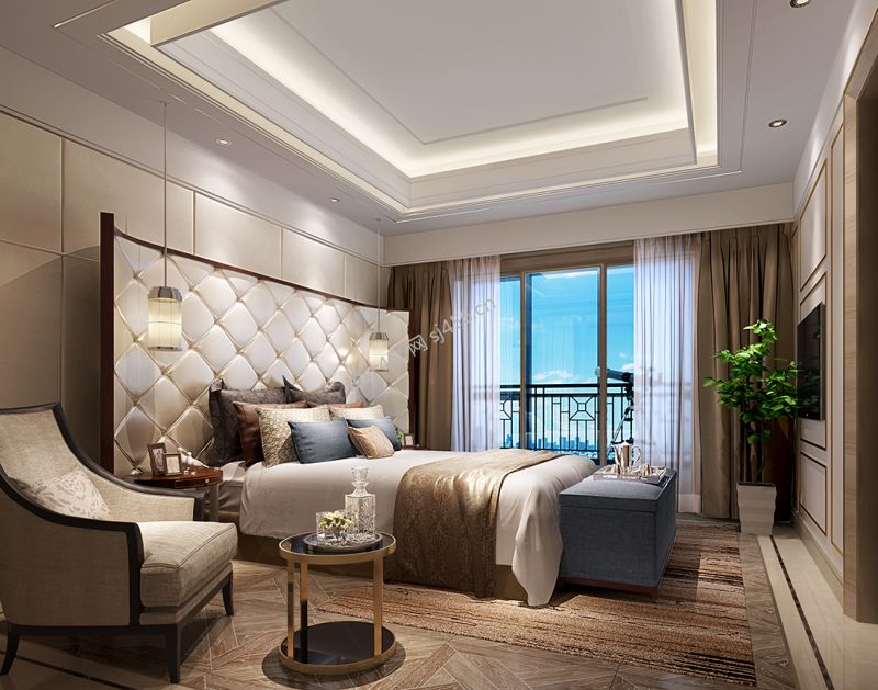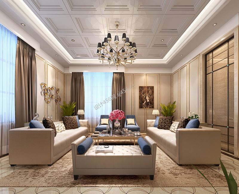 简欧式别墅木龙骨石膏板吊顶装修效果图
