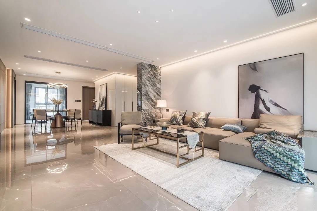 简练清晰的空间递进关系,划分出流畅的客餐厅动静区隔,彼此功能相对独立又有联接,强化了核心的交流与互动,享受生活中贴近自然的轻松与愉悦。