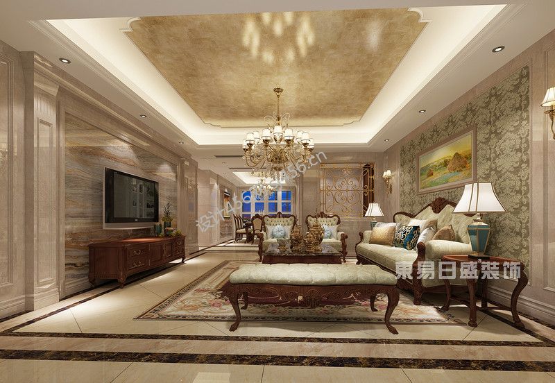 详情京武浪琴山200㎡欧式风格三居室客厅装修效果图