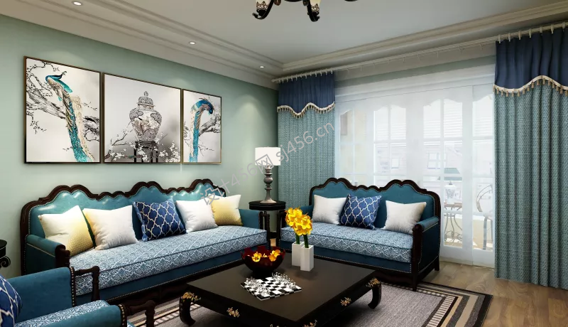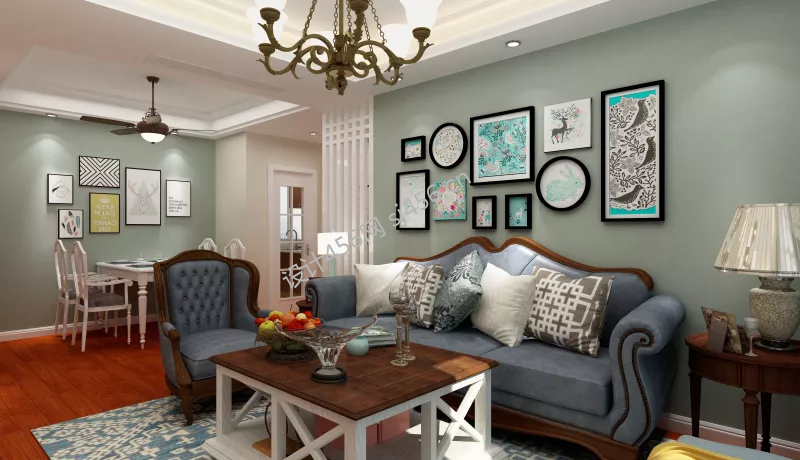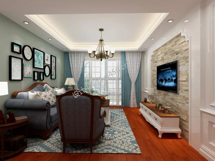 126平米简美风格三室两厅客厅吊灯装修效果图