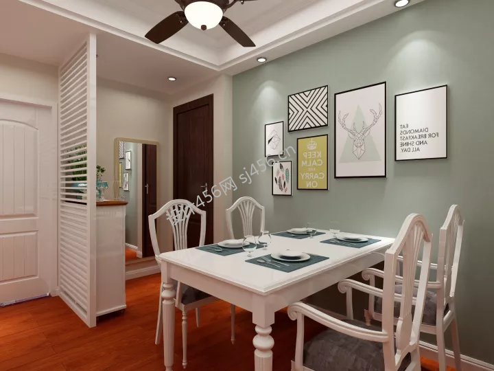 126平米简美风格三室两厅餐厅背景墙装修效果图