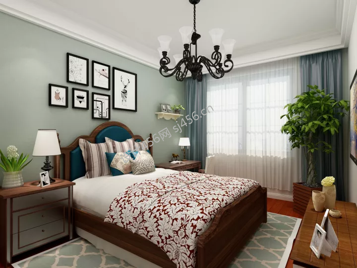 126平米简美风格三室两厅卧室照片墙装修效果图