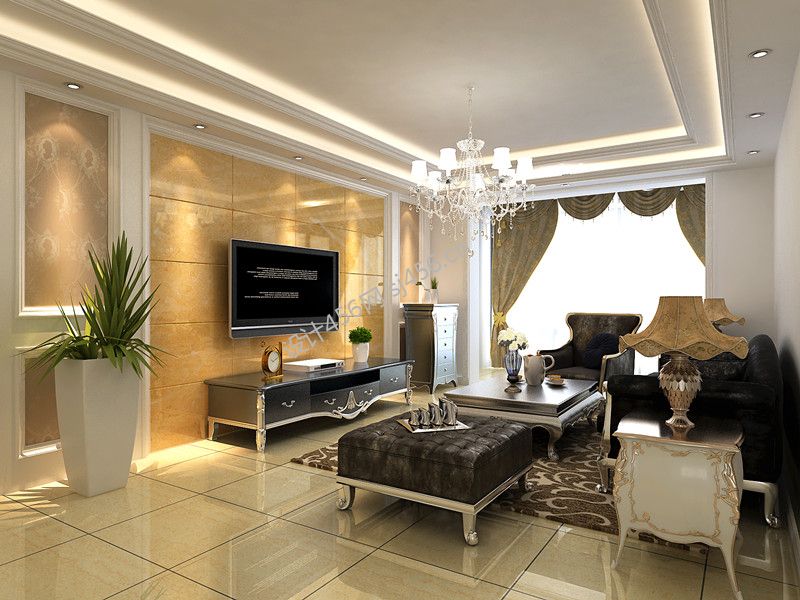 2020新古典客厅装修图片欣赏 2020客厅瓷砖电视墙装修图片