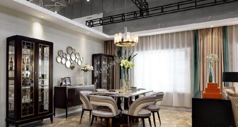 设计理念: 通过干净的主色与精致的点缀色的软装来体现古典风格是轻奢风格的重要特征。古典的线条设计与金色纹路装点的酒柜,带给餐厅高雅不失大气的质感,撞色设计的座椅赋予空间层理交错的时尚效果,让人觉得不会单调。 通过干净的主色与精致的点缀色的软装来体现古典风格是轻奢风格的重要特征。古典的线条设计与金色纹路装点的酒柜,带给餐厅高雅不失大气的质感,撞色设计的座椅赋予空间层理交错的时尚效果,让人觉得不会单调。