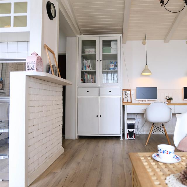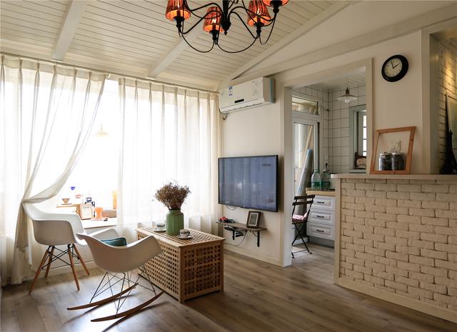 小户型面积比较小,很适合紧凑的方式进行装修,装成美式的复古风格,看起来也是很富有文艺的小格调。客厅搭配的是小型的家具,带有一个飘窗进行简单的改造,以后可以坐在飘窗上喝茶聊天,享受惬意时光。