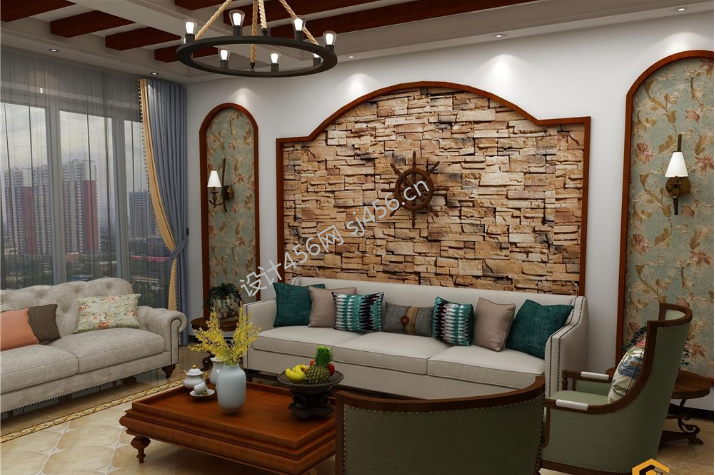 复兴苑210平米双拼别墅美式乡村风格装修背景墙效果图