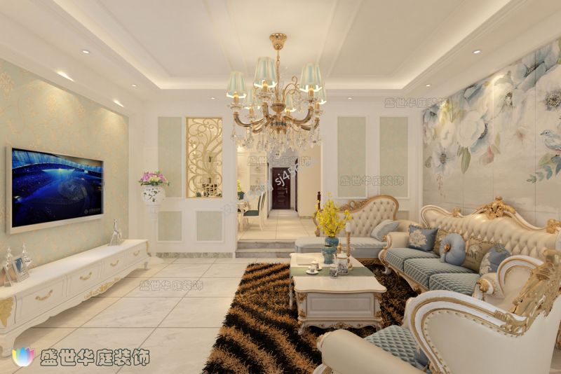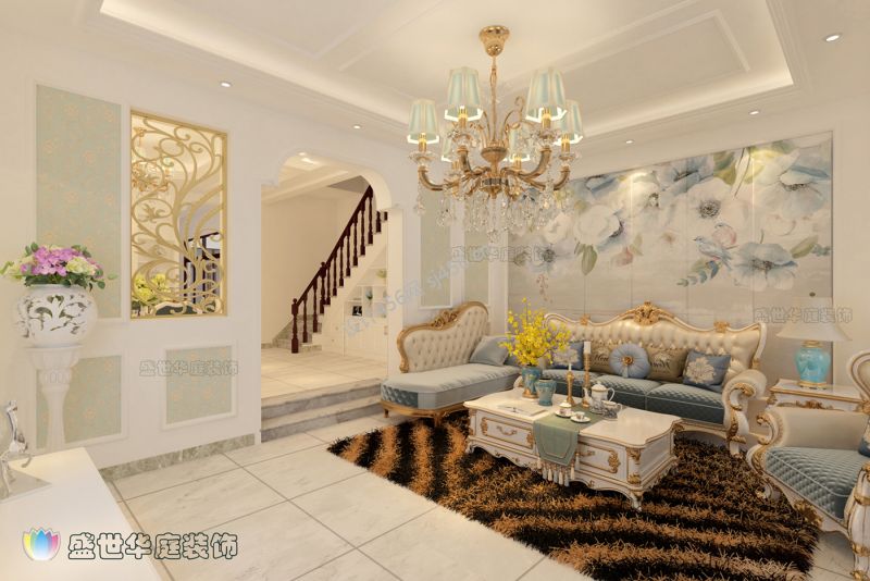 世纪花园228平米欧式别墅沙发背景墙装修设计效果图