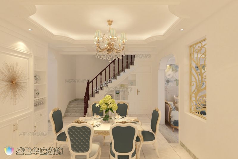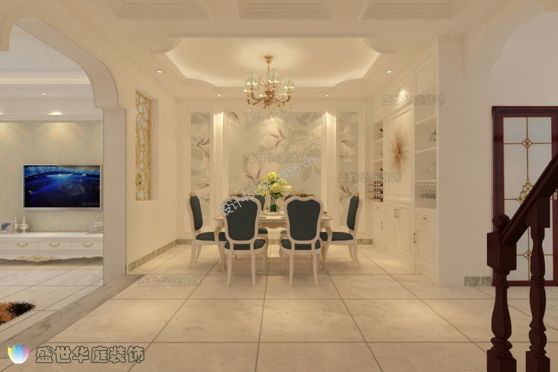 世纪花园228平米欧式别墅餐厅吊顶装修设计效果图